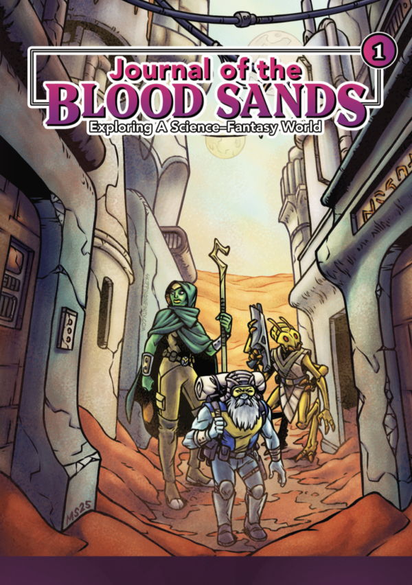Journal of the Blood Sands: Issue One is a system-light setting zine that lays out Xanathos: a post-apocalyptic science-fantasy sandbox inspired by John Carter, Heavy Metal, and Thundarr the Barbarian. The focus here is the world itself — its history, its factions, its pressure points — so you can drop it into any old-school or science-fantasy campaign and start playing.